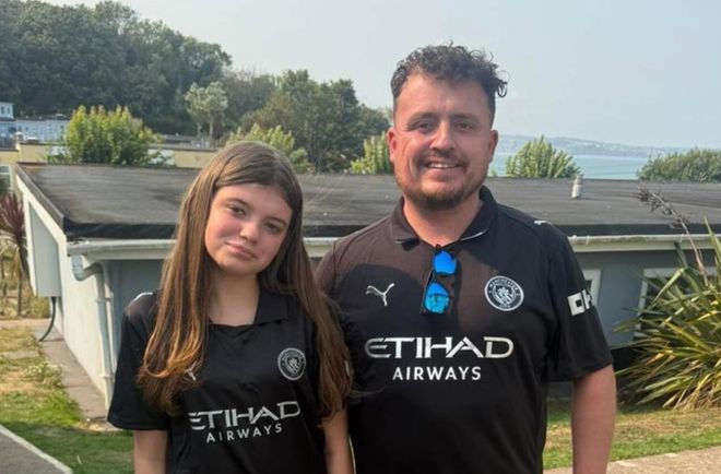 布拉德肖的家人向他表达了感人的敬意,曼城也表达了哀悼。该球迷的死因尚未确定,但他的表弟杰斯·布拉德肖告诉《曼彻斯特晚报》,家人已被告知“没有可疑情况”。布拉德肖留下了11岁的女儿、母亲珍妮特、双胞胎弟弟凯恩和弟弟扎克,他此前经营着自己的地毯清洁生意。(下图是布拉德肖和女儿合影)