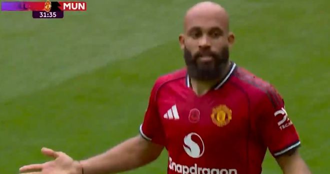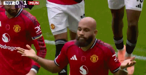 比赛的第31分钟,迪亚洛右路横传,姆贝莫头球冲顶破门。进球之后,姆贝莫双手一摊,示意球进得如此容易,这是曼联此役的第一次射正。